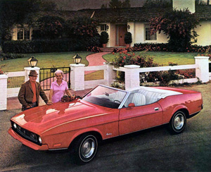 New rocker covers New front suspension The respray The finished respray! The finished interior My Mustang displayed on the Ford stand at the Henley-on-Thames show 1972 Mustang Convertible brochure, showing the higher spec Decor Group model, with the Mach 1 grille and colour coded urethene bumper as standard. Above is the standard convertible model with the chrome front bumpers Smart new US style show plates! |